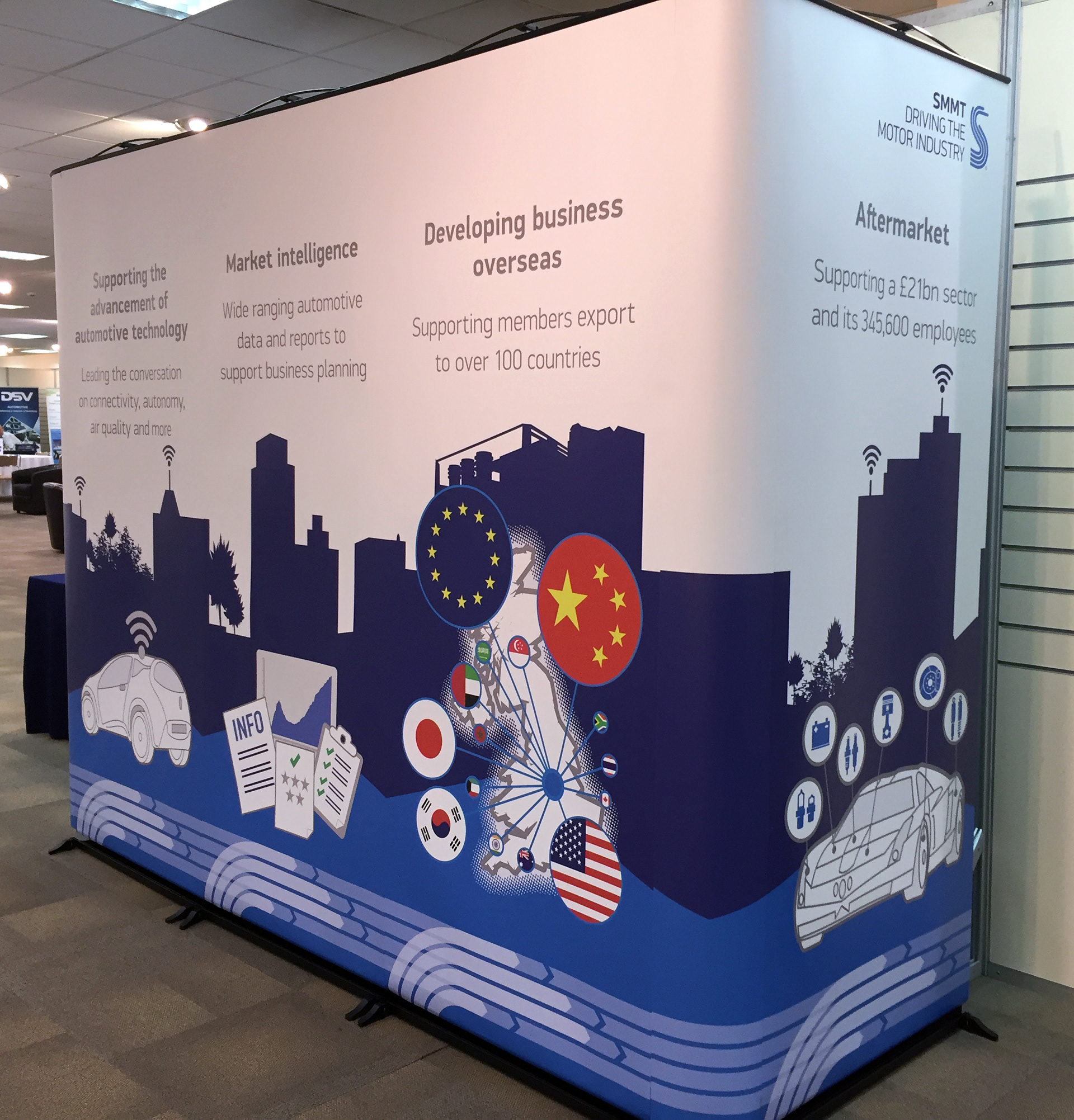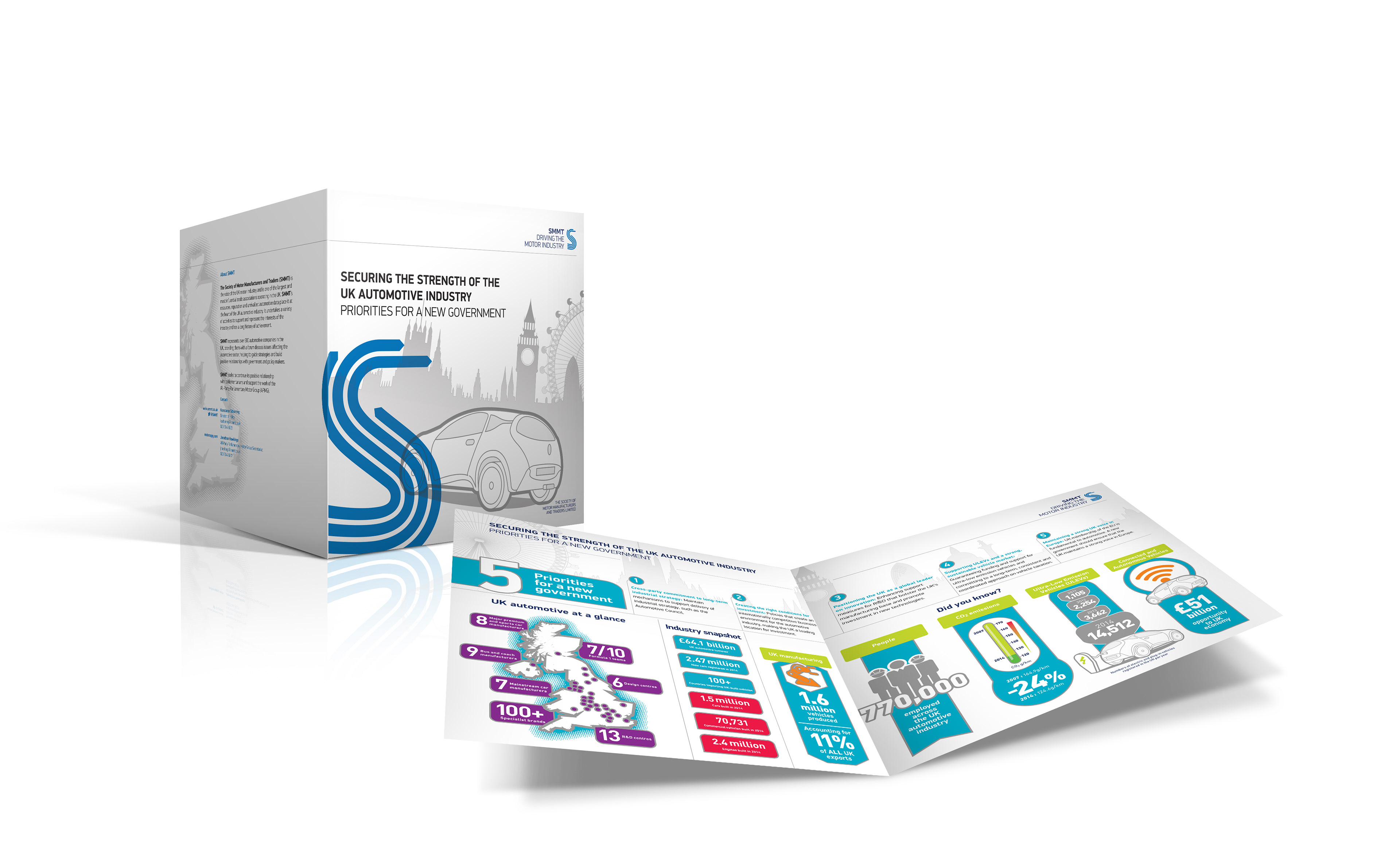 I have become the brand guardian for SMMT. Over the last three years, I have helped reinvigorate, redesign and update their brand identity, from reports to stand design.